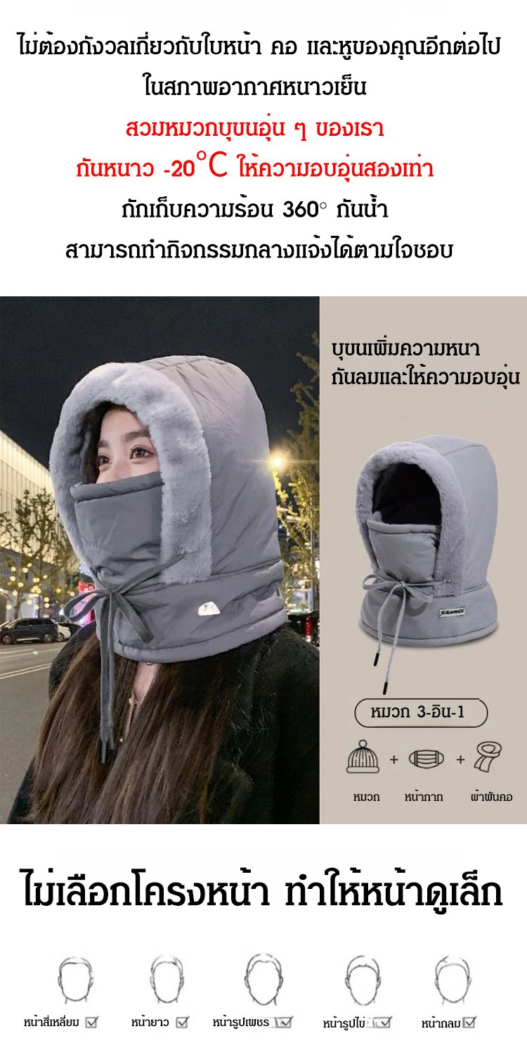 หมวกกันหนาวบุขนหนาอบอุ่น